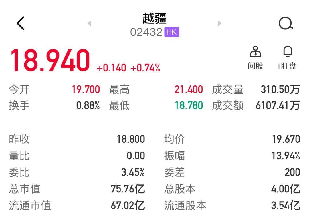 截止收盘,越疆报18.94港元,市值约75.76亿港元。