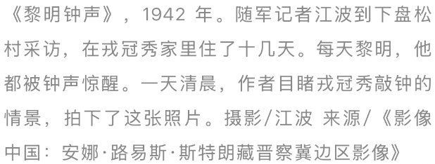 已往,随军记者江波到下盘松村采访,在戎冠秀家里住了十几天。每天清早,天刚蒙蒙亮,响亮的钟声就会把江波从梦中惊醒。本来,这钟声既是指挥各人滚动的报警信号,又是围聚游击队员治装迎敌的战斗军号,如故闲居催促全村庶民下地坐褥的动员令。江波仿佛看到,恰是戎冠秀这么的先进东谈主物,带领各人前进。在黎明行将到来之际,这位高举木棒的敲钟者,不恰是中国东谈主民立异精神的化身吗?于是,江波举起相机,拍下了这个场景,其后这张相片成为目田区影相作品的优秀代表作之一。
