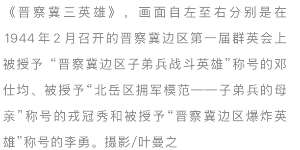“只见她梳着大纂儿,穿戴破旧的棉袄,立在台上对各人呶呶不休。”剧作者胡可第一次见到戎冠秀,是在1944年春节事后,晋察冀北岳区的第一次群英会上。其时,持续了三个月的一场远程的反“涤荡”斗争刚刚适度。为荧惑斗志,赏赐英模,会议开得很恢弘,每个到会者齐论述了我方的行状。在此次大会上,戎冠秀被授予“北岳区拥军表率——子弟兵的母亲”光荣名称。