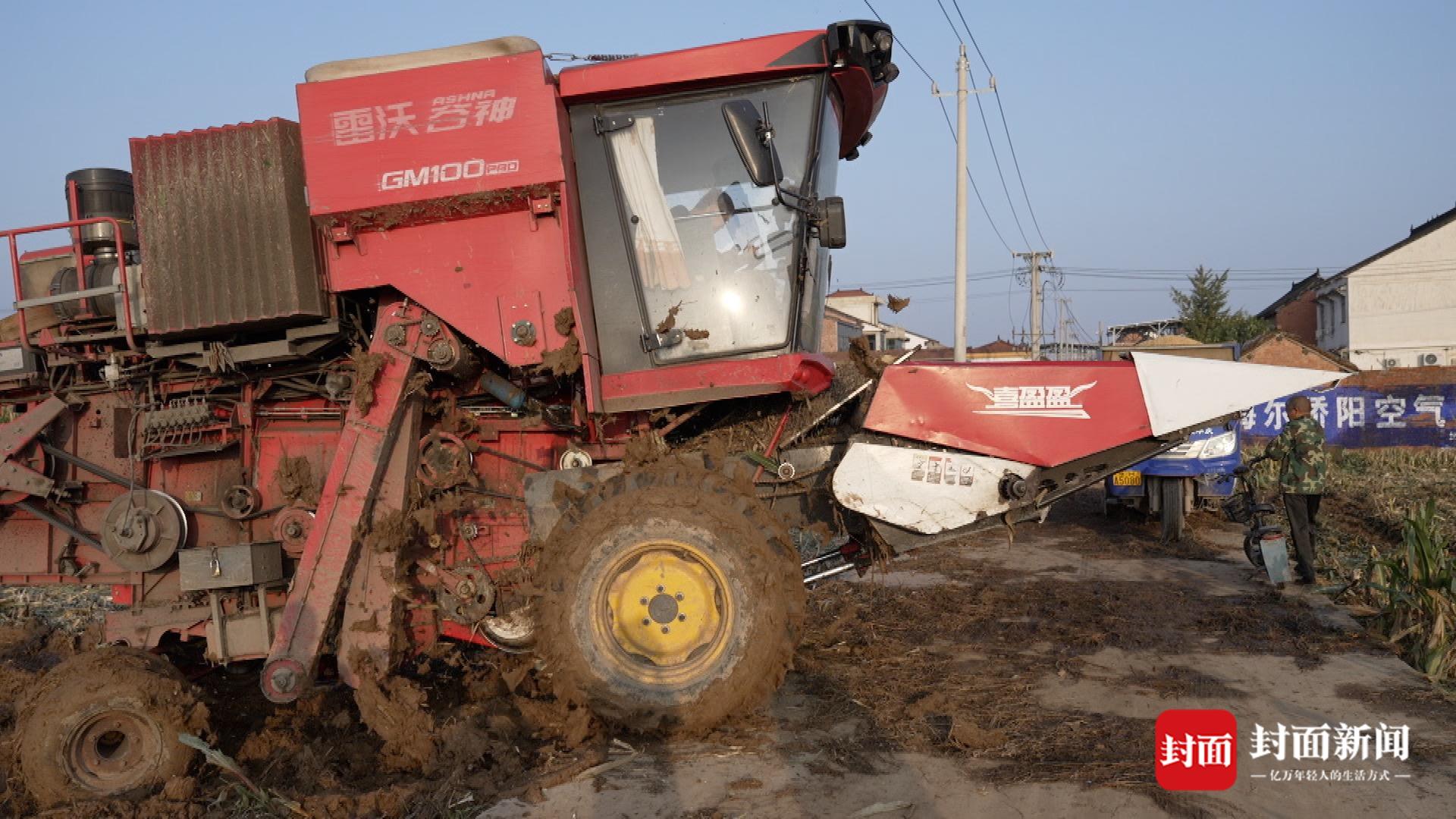 10月13日,河南焦作市温县方头村,赵东明驾驶收割机在田庐抢收。因为旷野泥泞,庸俗1个小时完成的责任,他施行干了2个半小时。