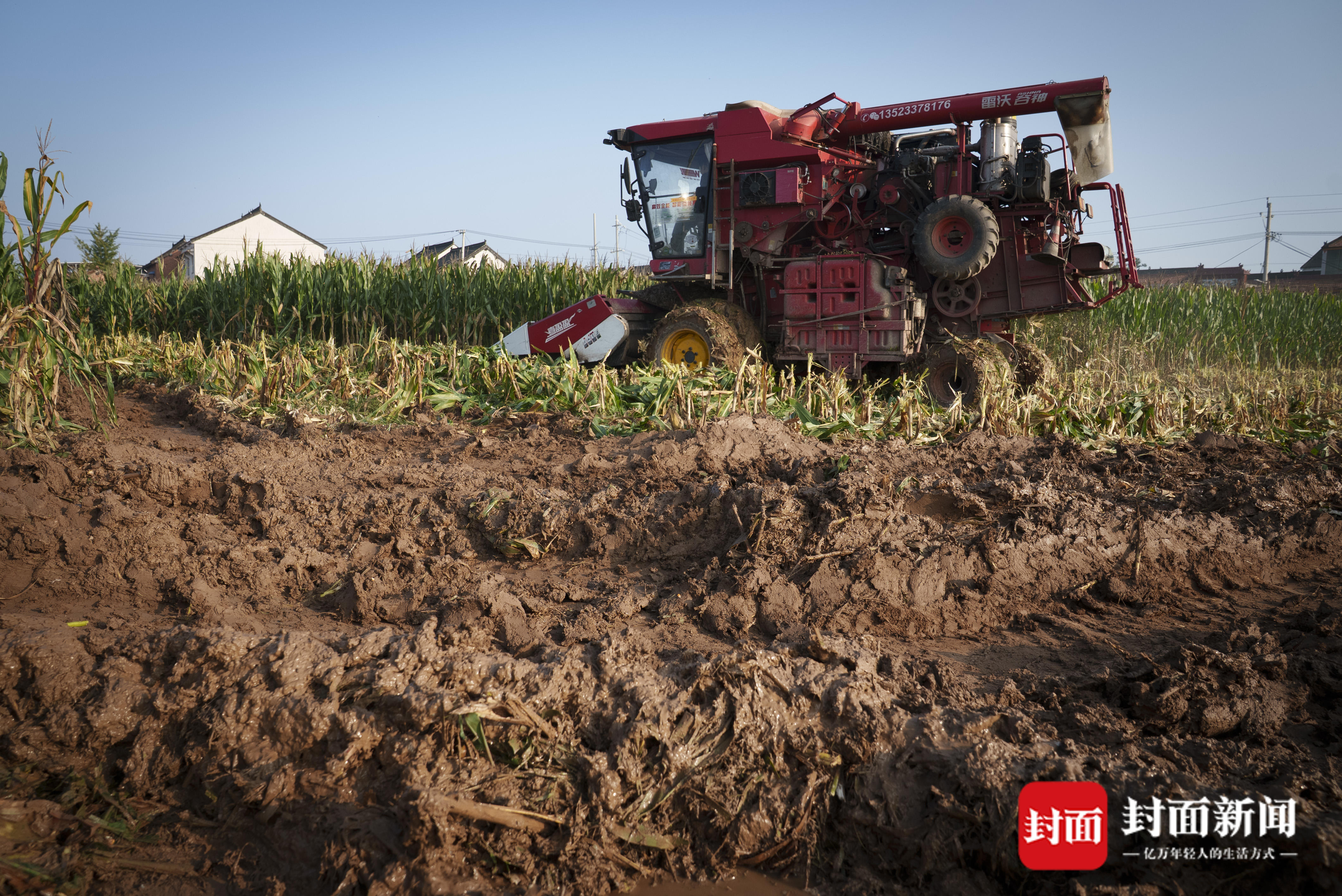 10月13日,河南焦作市温县韩郭作村,赵东明驾驶收割机在泥泞中抢收。他暗示,“往年这个技艺,秋收的活基本还是干完毕,本年的天气才刚刚启动不错干。”