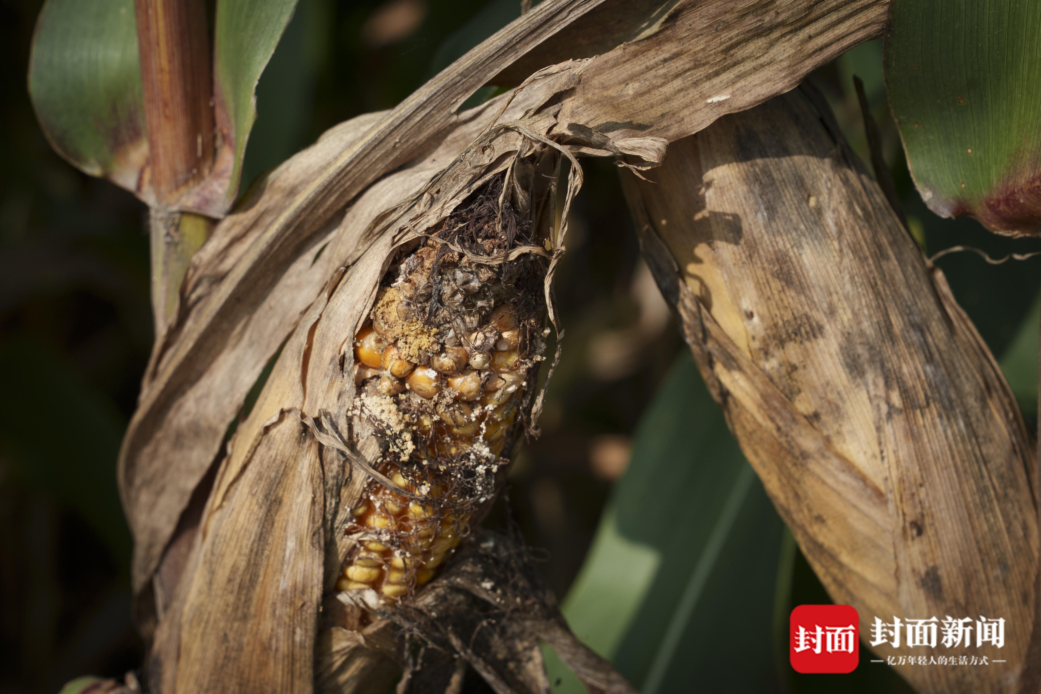 10月13日,河南焦作市温县方头村,恭候收割的玉米还是发霉。